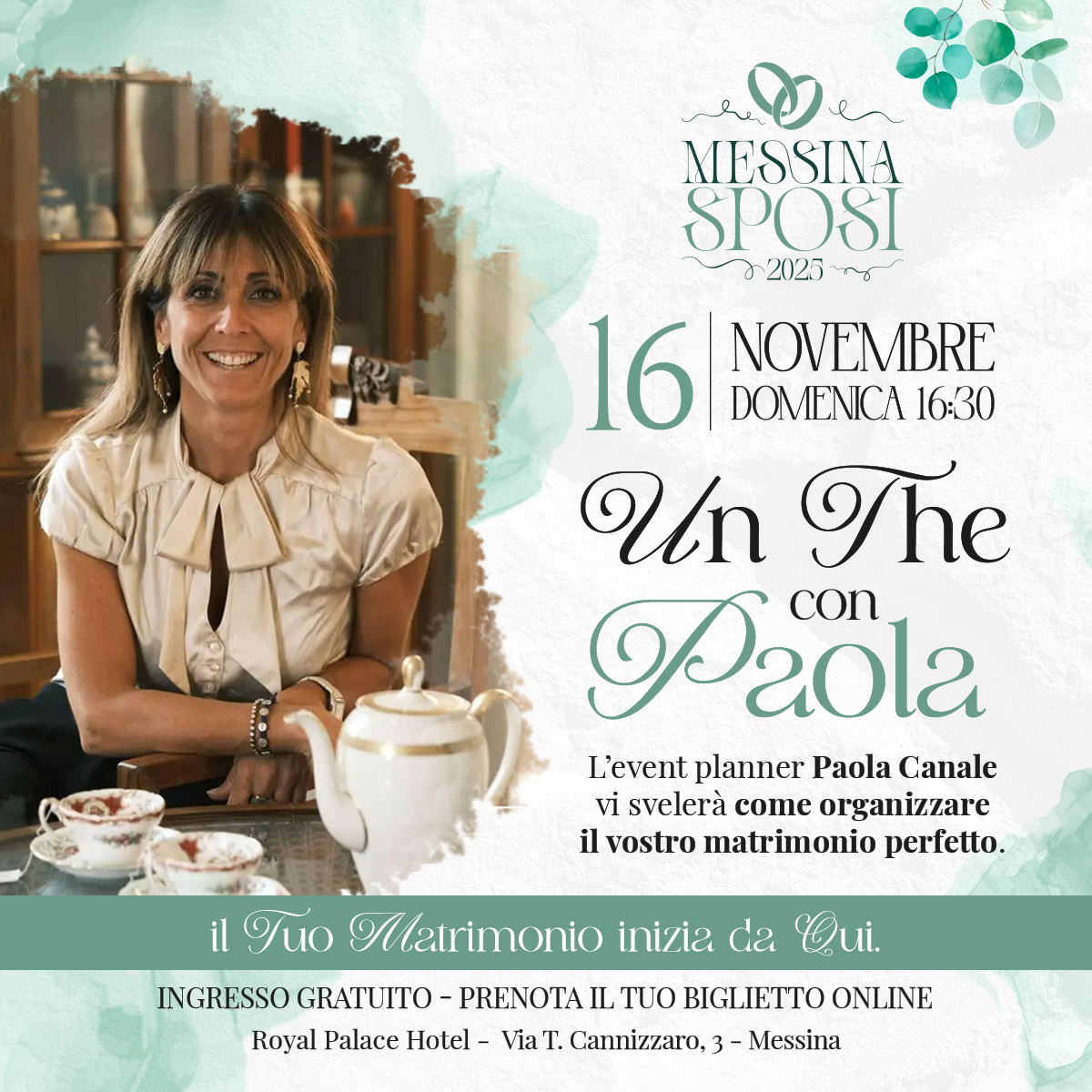Sabato 15 e domenica 17 novembre 2025 vi aspettiamo al Royal Palace Hotel per un evento unico dedicato a tutti i futuri sposi!